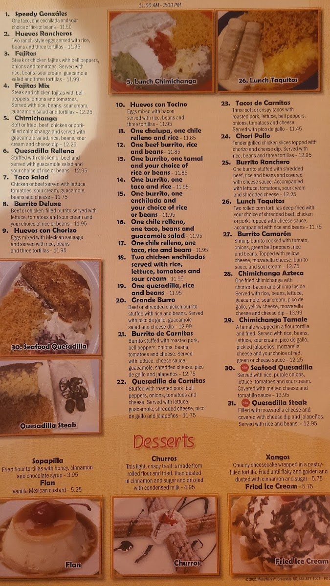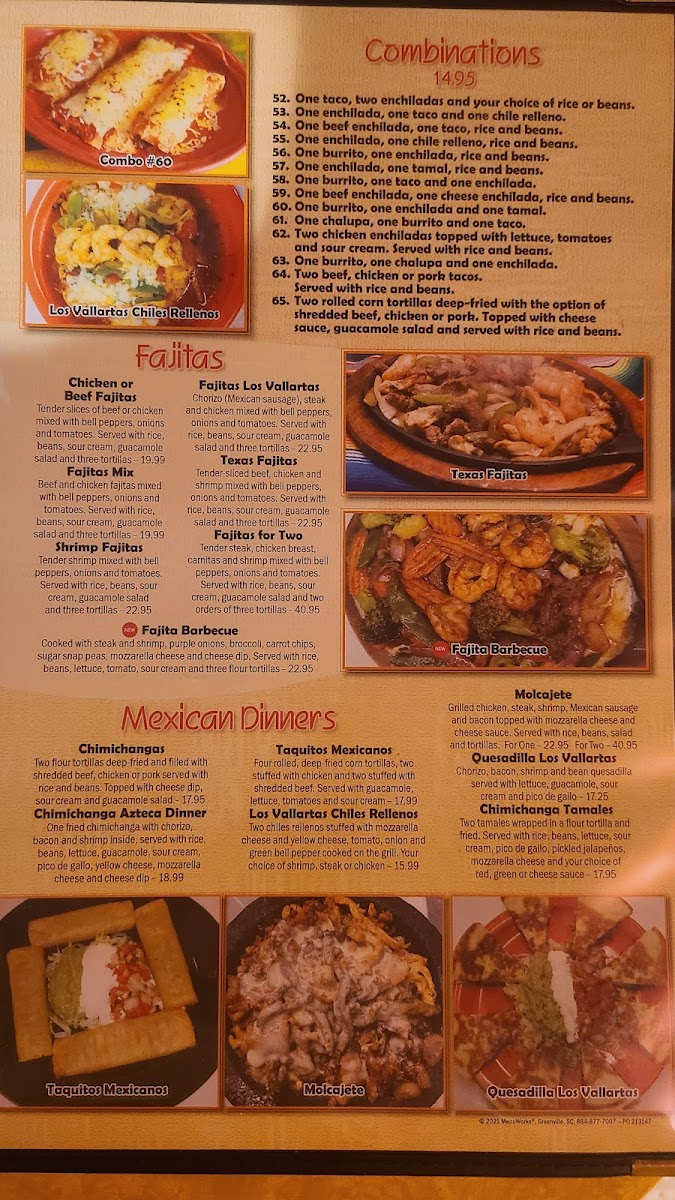 The Carnitas offerings include favorites like the Quesadilla De Carnitas, Tacos De Carnitas, and the satisfying Carnitas Dinner. If you’re looking for something to kick off your meal, the Appetizers section won’t disappoint with options like Nachos De Camarón, Quesabirria Tacos, and Nachos Al Carbón. For something more substantial, the Mexican Dinners selection boasts the rich flavors of Los Vallarta's Chiles Rellenos and the crispy Spicy Chimichanga, as well as the popular Chimichanga Azteca Dinner.
